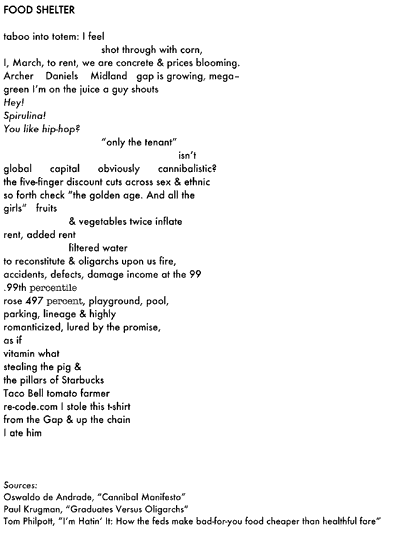 My economy is a poem called “First Purchase of the Month” consisting of two stanzas